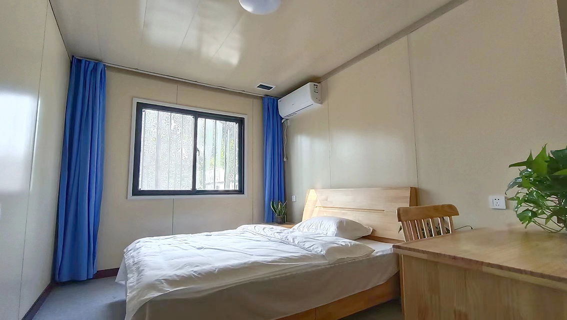 模块建筑隔离房间均配置衣柜、桌椅、空调、床铺,独立卫生间,配备热水器、淋浴等设施,及其他功能房:接待室、警务室、医疗区、检验区、消毒区、工作人员办公室、会议室、储物间、员工休息室等,充分满足疫情防控工作所需。